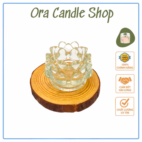 Đế nến hoa sen được chế tác từ thủy tinh trong suốt cao cấp, tạo nên vẻ đẹp tinh tế và sang trọng. Chất liệu thủy tinh trong suốt không chỉ tôn lên vẻ đẹp của ngọn lửa mà còn giúp ánh sáng lan tỏa đều, tạo nên không gian ấm áp và lãng mạn.
